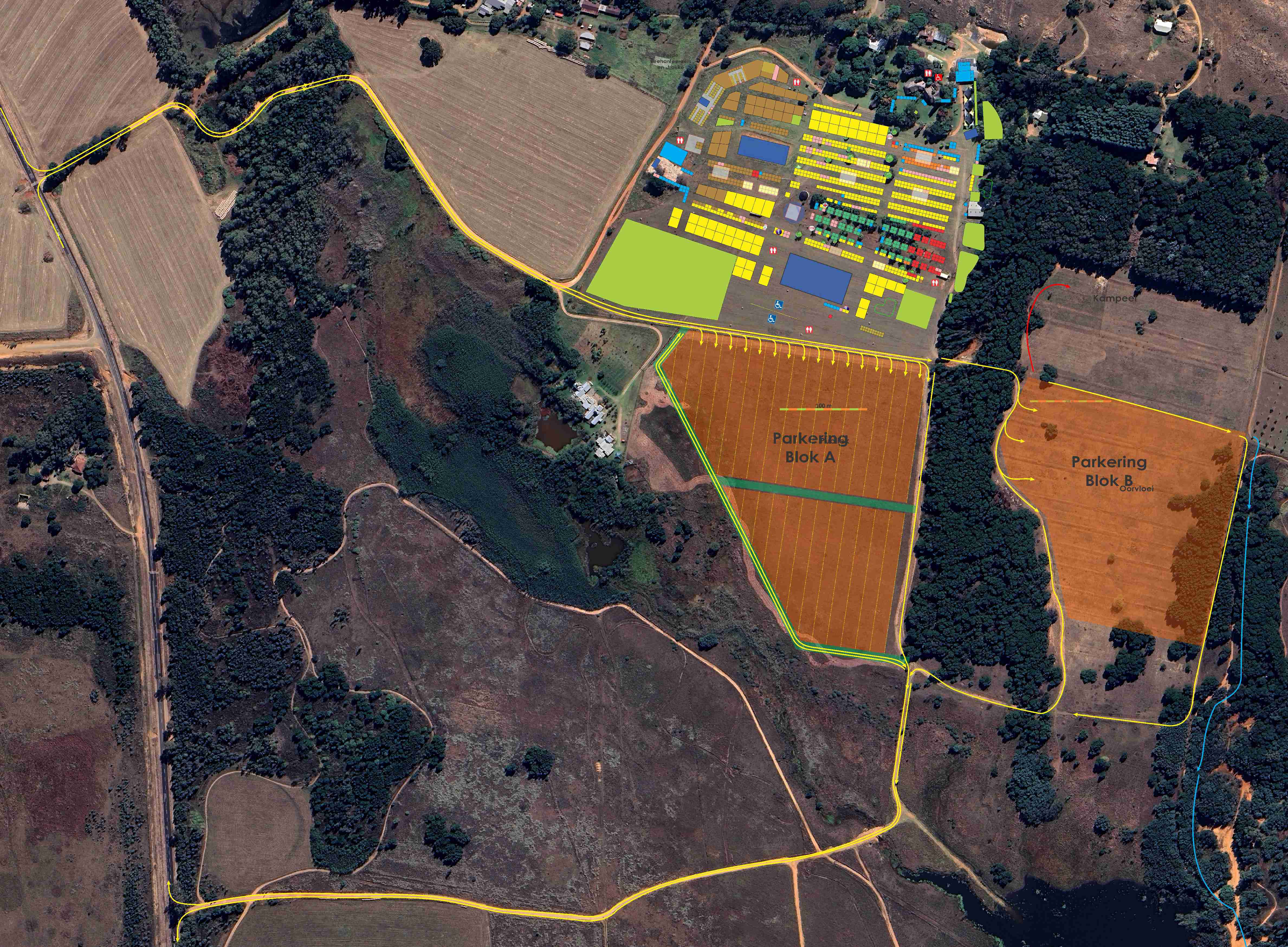 Daar word voorsiening gemaak vir twee ingange na die terrein. Die een is 'n twee baan pad en die ander een is 'n een baan.